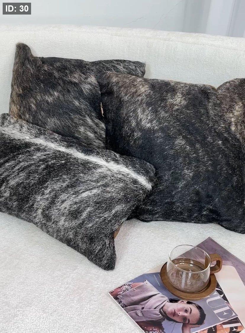 أضف لمسة من الفخامة والتميز إلى ديكور منزلك مع طقم مخدات(قرن) من جلد بقري أصلي.